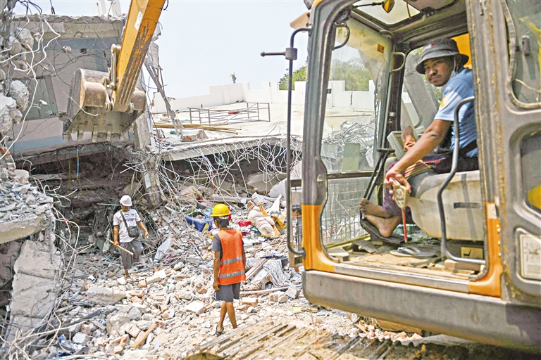 这是3月29日在缅甸曼德勒拍摄的救援现场。 新华社/法新