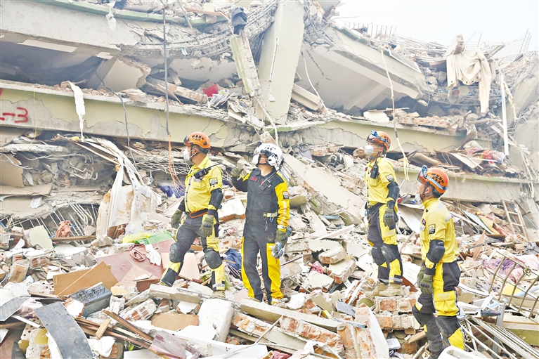 3月30日,中国公羊救援队在缅甸曼德勒天空别墅开展救援行动。新华社发