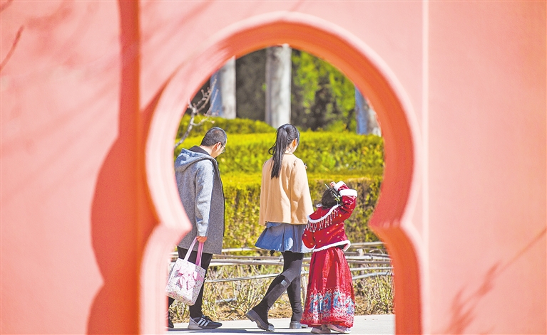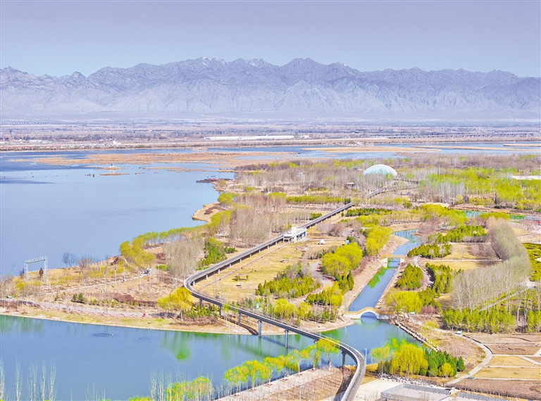 4月1日,无人机镜头里的银川花博园绿意涌动。