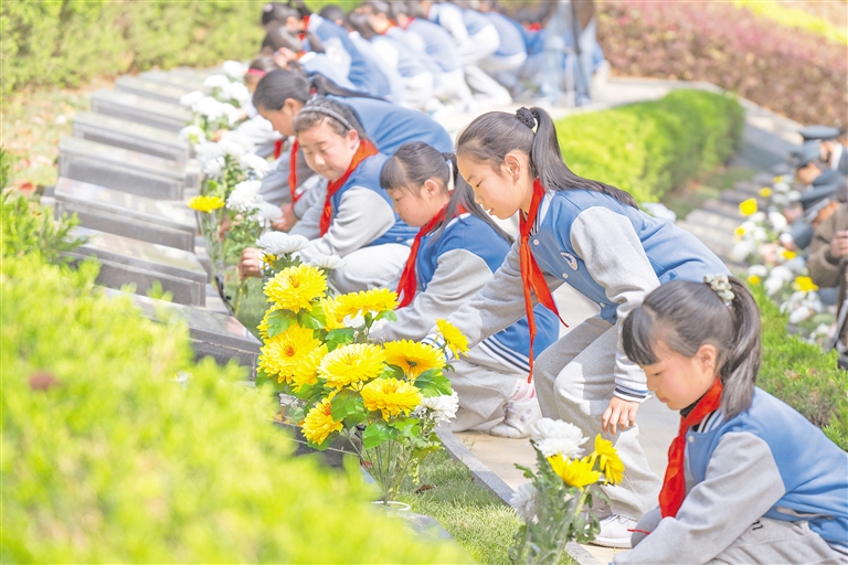 4月1日,学生在安徽省芜湖市繁昌区烈士陵园祭扫革命先烈。清明将至,各地开展祭奠活动,缅怀先烈,寄托哀思。新华社发