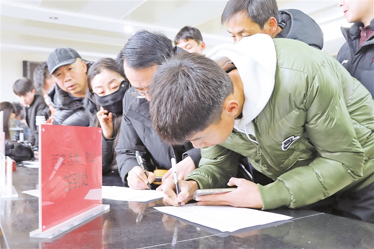 线下招聘会上,求职者填写简历。 本报记者 郭小立 摄