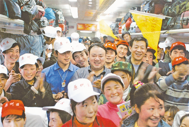 固原市年轻人乘坐“幸福专列”前往外地务工。 (资料图片)