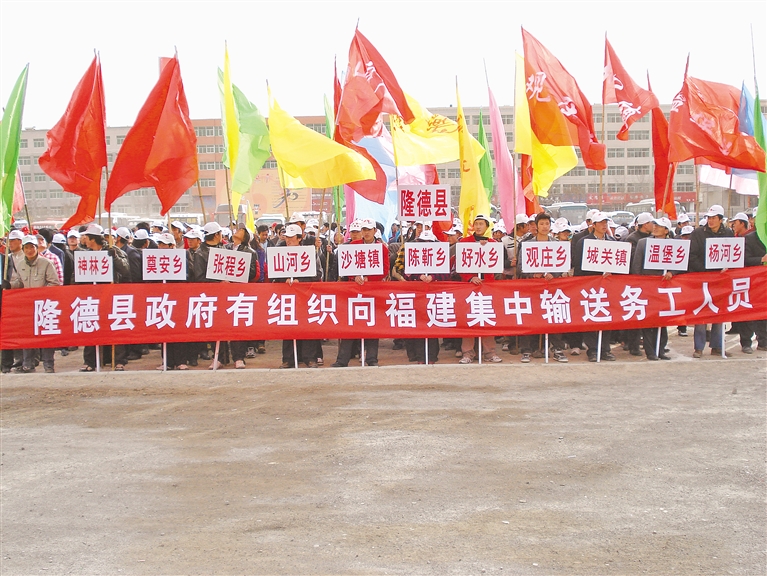 隆德县向福建集中输送务工人员。 (资料图片)