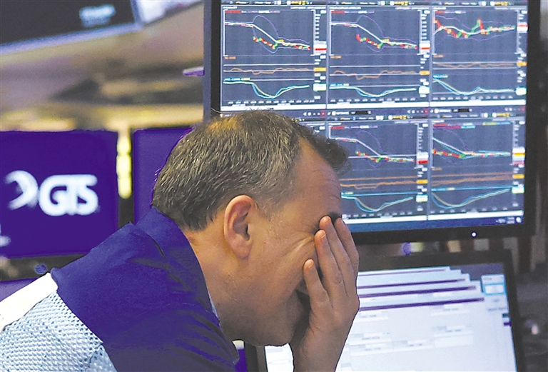 4月4日,交易员在美国纽约证券交易所工作。纽约股市三大股指4日大幅下跌。 新华社/法新