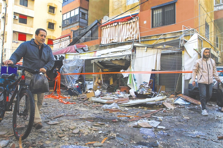 4月4日,行人经过位于黎巴嫩西顿的遇袭地点。以色列国防军4日表示,在当天对黎巴嫩西顿地区的军事行动中,打死了巴勒斯坦伊斯兰抵抗运动(哈马斯)指挥官哈桑·费尔哈特。 新华社/法新