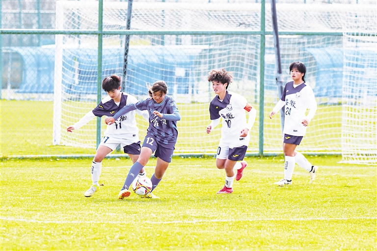 宁夏女足队员在比赛中突破。在刚刚结束的2025年全运会U16女足资格赛中,宁夏女足创造历史,以小组第二成功晋级总决赛。 均本报记者 王刚 实习生 马琴 摄