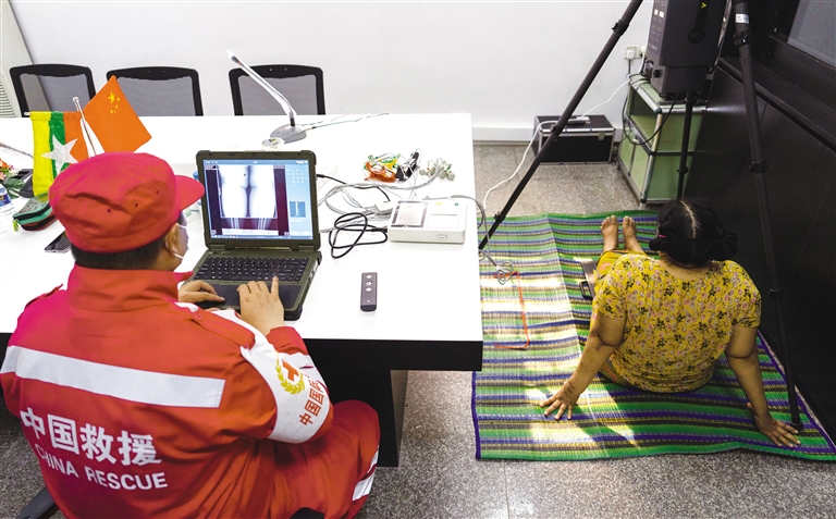 4月5日,在缅甸曼德勒,由中国军队参与组派的中国国际救援队队员为灾区民众诊疗。当日,多支中国救援力量在缅甸曼德勒开展医疗巡诊,为当地灾区民众提供“零距离”诊疗服务。