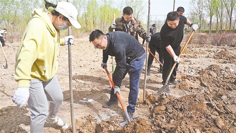金凤区干部职工在毓秀公园种树。 (图片由受访单位提供)