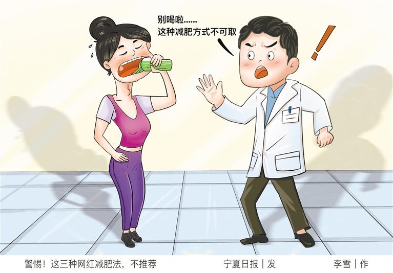 看似“繁花似锦”的喧嚣背后,实则暗藏危机。日前,国家卫生健康委的新闻发布会上,一位杭州小伙在回答记者提问时现身说法,言明燃脂丸、减肥茶等产品会给身体带来腹泻脱水、抑制食欲、破坏肠胃等副作用。北京医院医生也从专业角度出发,分析了部分网红减肥方法存在的健康隐患:第一,不推荐生酮饮食减肥法,容易出现营养失衡;第二,营养粉代餐减肥法也不推荐,因为营养素不全面;第三,液断减肥法是一个极端饮食模式,长期使用这类的减肥方法,胃肠道功能会出现失衡,营养素也会明显处于缺失状态。