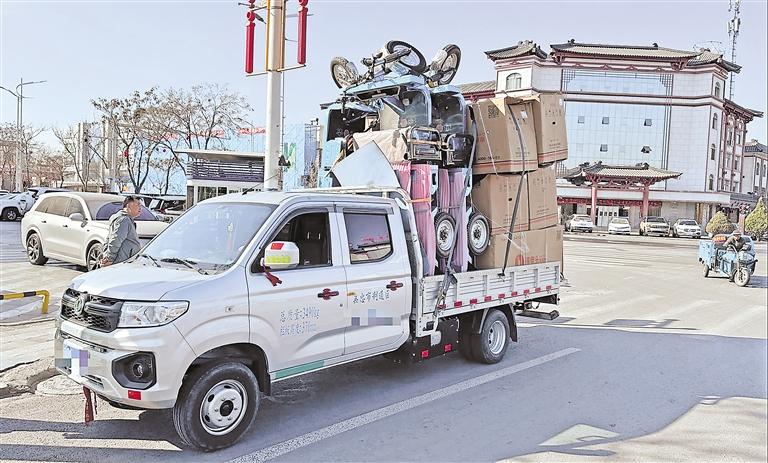 4月2日,灵武市公安局交通管理大队民警在辖区嘉源街与西平路工作时,一辆轻型栏板货车引起了民警的注意。该车所载货物高高堆起,远远超出了车辆自身应有的承载边界。 民警见状,赶忙示意货车靠边,接受检查。经询问,驾驶员坦言,为减少运输中的麻烦,节约成本,少量多次运输太过折腾,便心存侥幸,强行把所有货物都装上了车。民警即刻对驾驶员进行批评教育,依据相关法规,对驾驶员驾驶机动车载货长宽高超过规定的违法行为,开出罚款100元、驾驶证记1分的罚单,并要求其立即卸货转运。交警提醒:车辆一旦超长、超高、超宽,就如同携带了“移动炸弹”,上路行驶时,务必摒弃侥幸心理,严格遵守交通规则。 (本报记者 陈思)