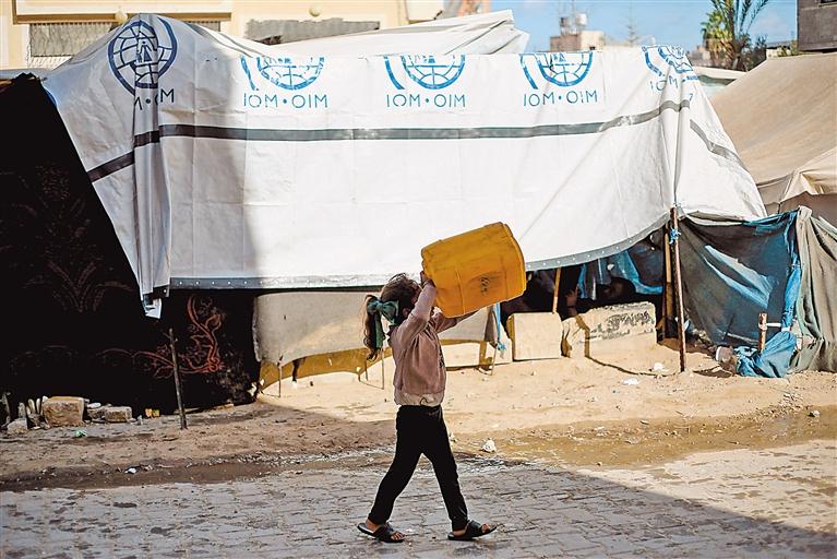 4月10日,在加沙地带中部的布赖杰难民营,一名女孩在喝水。联合国儿童基金会近日发表声明说,以色列与巴勒斯坦伊斯兰抵抗运动(哈马斯)持续近18个月的冲突导致超过1.5万儿童丧生、逾3.4万儿童受伤,近100万儿童无家可归。新华社/法新