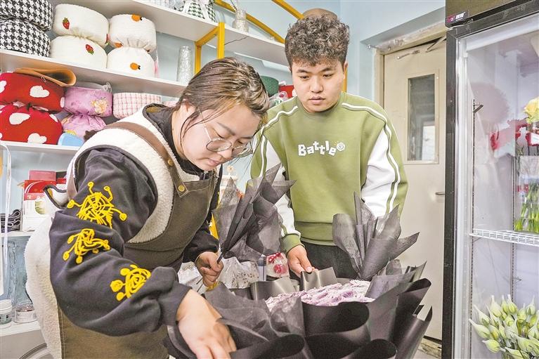 在银川市西夏区贺兰山西路的一处街角,一家名为“花海”的鲜花咖啡复合店格外引人注目:一楼鲜花与咖啡的香味交织,二楼是年轻人聚会打卡的文艺空间。2024年毕业的电气工程专业大学生马旭,正将新到的海洋之歌玫瑰插入养花瓶,阳光透过落地窗在花束间投下斑驳光影。
