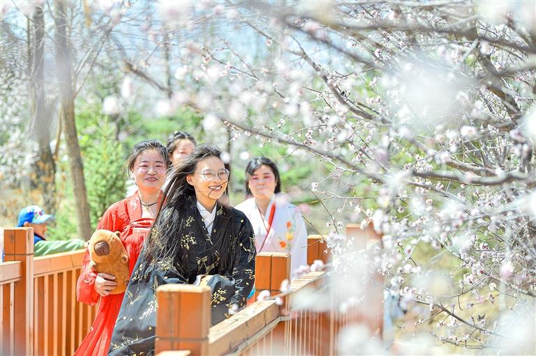 “花美,看着游客在我院子里赏花,我心里更美。”游客们在白阳镇周沟村方登峰的果园中穿梭,有的踮起脚尖闻花香,有的小心翼翼地靠近花朵拍照。今年已是方登峰种植红梅杏的第九个年头。去年,得益于精细化管理,他的果园大丰收,售卖红梅杏鲜果就收入4万余元。