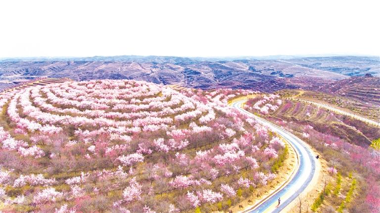 在彭阳县金鸡坪梯田公园,粉白色的山桃花、山杏花正肆意盛开。在观景台上,游客们有的举起手机自拍,定格最美瞬间;有的张开双臂,想要把整片花海拥入怀中。“彭阳县的山花不是以朵为单位计量,而是以‘山’为单位计量的。一山一山的花海,把彭阳县点缀成一座大花园。”来自银川市的游客吕青被眼前的山花烂漫震撼。