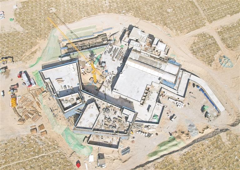4月14日,空中俯瞰贺兰山宿集(宁夏)酒庄一期酒堡项目,百余名工人在建设现场井然有序地加紧施工。贺兰山宿集总投资3亿元,一期占地20亩、建筑面积1.1万平方米,项目创新采用“生产+文旅”双轮驱动模式,建成后将联动周边400亩葡萄种植园,推出酒庄寻访、自然探索等深度体验活动。本报记者 左鸣远 摄