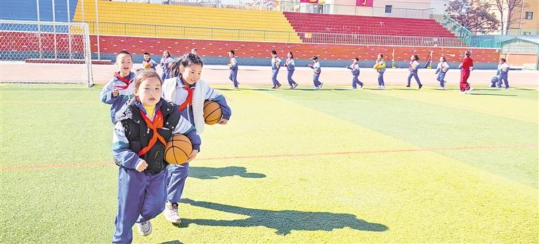 采访期间,记者每到一所学校,只要是课间,操场上、教学楼前空地上都有孩子们运动的身影,跳绳、踢毽子、跳舞、打球……每个年级设置不同的活动项目,尽量让全班同学都能参与进来。