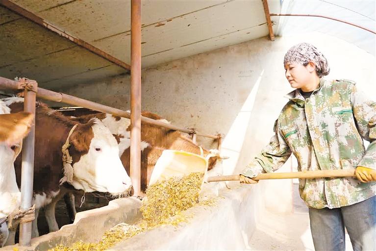 4月8日一大早,西吉县什字乡山庄村的一户小院里传出苏小芳的声音:“我走了,走什字厨娘那搓麻花去咧!”做早饭、喂牛,尽管已经做了好些活计,苏小芳却依然活力满满,她说:“养牛现在是我的副业,我还有正事呢!”