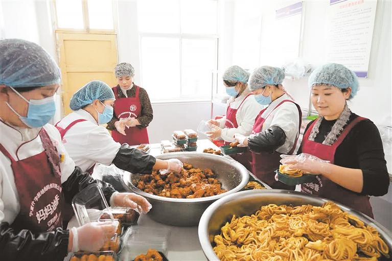 和苏小芳一样,34岁的石玉香也在这里获得了满满的幸福感。因为家里有3个正在上学的孩子,对她来说,“照看孩子是我的头等大事,家里一天也离不了人”。然而,仅靠丈夫做装卸工的收入难以维持一家人的生活。食品公司的成立为她提供了一份理想的工作。在这个离家步行路程只有5分钟的地方,石玉香实现了既能照顾孩子又能增加家庭收入的心愿,她说:“不仅日子越过越松活,而且每天和姐妹们一起干事业,让更多人品尝到我们的手艺,真让人开心!”