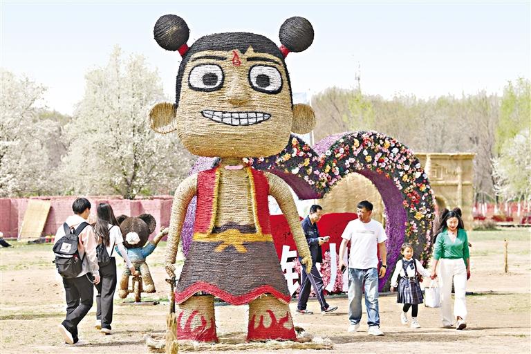 4月19日,银川鸣翠湖国家湿地公园变身稻草艺术世界,吸引了不少游客打卡。当日,2025年第三届鸣翠湖大地艺术季——国际稻草人艺术节在银川鸣翠湖国家湿地公园开幕。本届大地艺术季全场景展示以“奇迹”为主题,首次引入国产AI技术参与策展,打造近3万平方米的沉浸式艺术空间,展出40余组融合湿地农耕文化与现代艺术的巨型稻草装置。艺术节将持续至6月2日,其间将推出研学旅游、亲子互动等多元化产品。 本报记者 王刚 摄