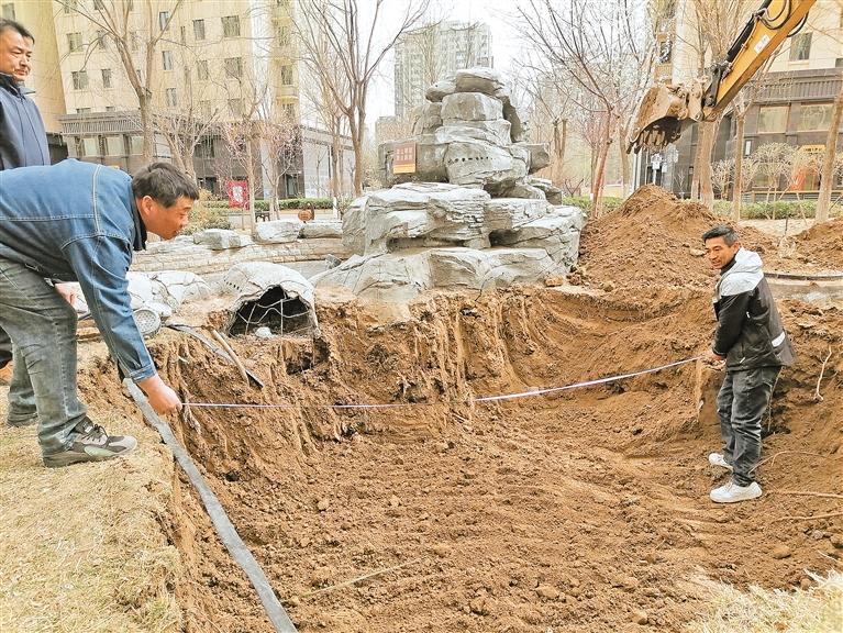 4月2日,在金凤区上海西路街道天润府小区景观水系上游,一台挖掘机正挥舞手臂,掘土建造雨水收集池和沉淀过滤池,水系下游将建造雨水收集池、过滤沉淀池和清水池。该小区的节水型改造工程主要建设屋面雨水收集利用系统、水系过滤循环使用系统等,收集的雨水将作为绿化和小区景观水系用水。项目投用后,小区每年可节约用水量2.2万立方米,节约能耗资金6.2万元。