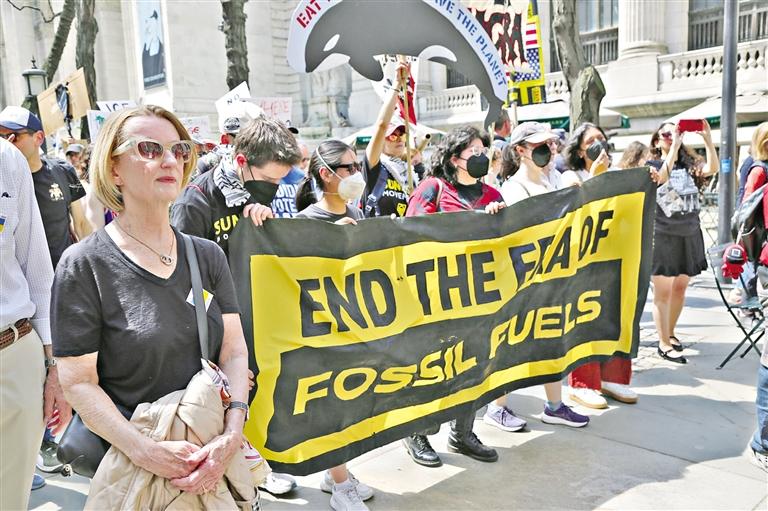 4月19日,人们在美国纽约街头参加抗议活动。新华社发