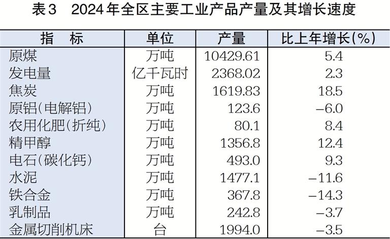 表3 2024年全区主要工业产品产量及其增长速度