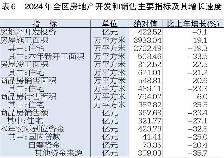 表6 2024年全区房地产开发和销售主要指标及其增长速度