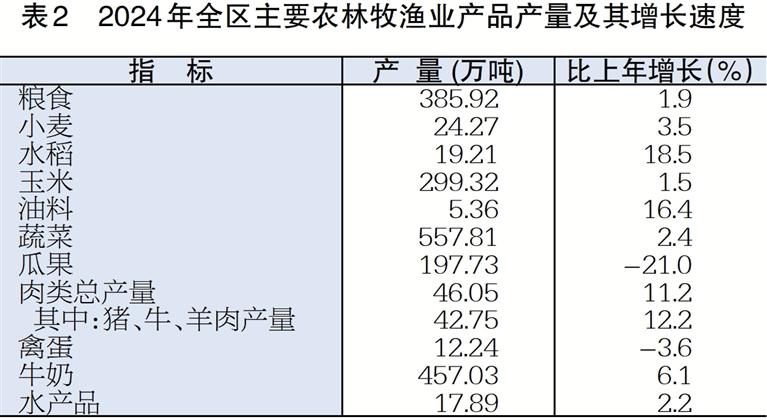 表2 2024年全区主要农林牧渔业产品产量及其增长速度