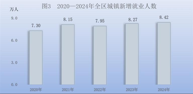 全年全区城镇新增就业8.42万人;农村劳动力转移就业84.02万人。全区农民工[4]总量109.2万人,比上年增长2.3%。其中,外出农民工85.3万人,增长2.6%;本地农民工23.9万人,增长1.3%。