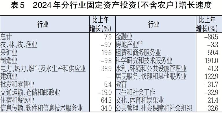 表5 2024年分行业固定资产投资(不含农户)增长速度