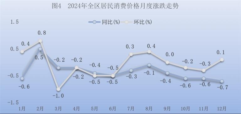 全年居民消费价格比上年下降0.3%。工业生产者出厂价格下降6.9%。工业生产者购进价格下降3.7%。