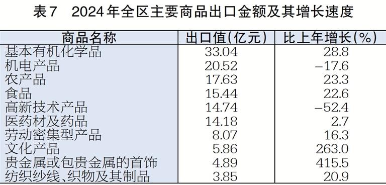 表7 2024年全区主要商品出口金额及其增长速度