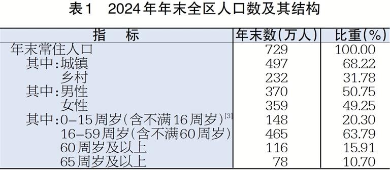 表1 2024年年末全区人口数及其结构