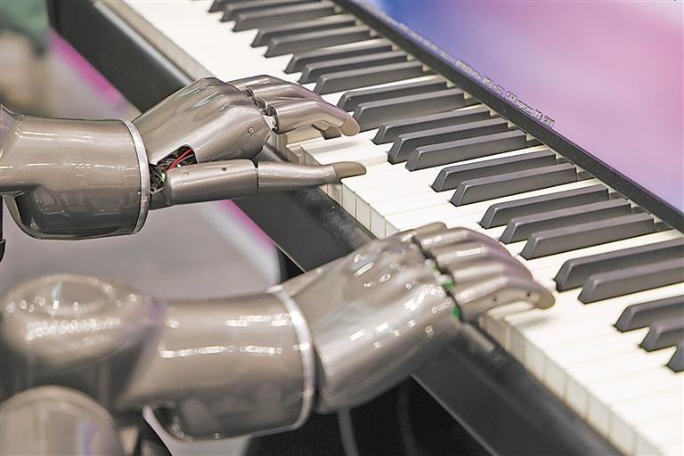 4月24日,人形机器人展示弹钢琴的技能。4月24日,首届机器人全产业链接会(FAIR plus 2025)在深圳会展中心启幕,吸引约180家来自全国各地的机器人产业链上企业参加。此次活动为期3天,由深圳市机器人协会主办。 新华社发