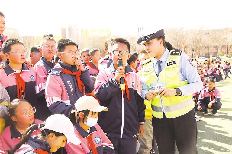 4月24日,交通安全知识问答现场,孩子们踊跃参与。当天,石嘴山市交通安全进校园巡回宣讲首场活动在石嘴山第十一小学举行。石嘴山市公安局交警分局和刑侦支队为1400余名师生带来摩托车特技、警犬搜爆抓捕扑咬表演,现场还设置了酒精测试体验、交通安全知识问答及车辆盲区认识小游戏,通过活动在孩子们心中播下“知危险、会避险”的种子。 本报通讯员 张晓龙 摄