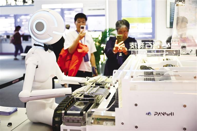 4月26日,观众在第三届中国(安徽)科技创新成果转化交易会上观赏一款弹钢琴的机器人。当日,第三届中国(安徽)科技创新成果转化交易会在安徽省合肥市开幕。本届科交会以“科技打头阵 创新赢未来”为主题,吸引了海内外两千多家企业和近两百所高校院所参展,总布展面积20000平方米,设有序厅、科技引领、产业创新、生态赋能、“双招双引”路演对接以及新技术新产品体验等6个展示对接区,展示了国内外最新科技成果。同时将举办十场专项对接活动,开展项目路演、交易,促进科技项目落地。 新华社发