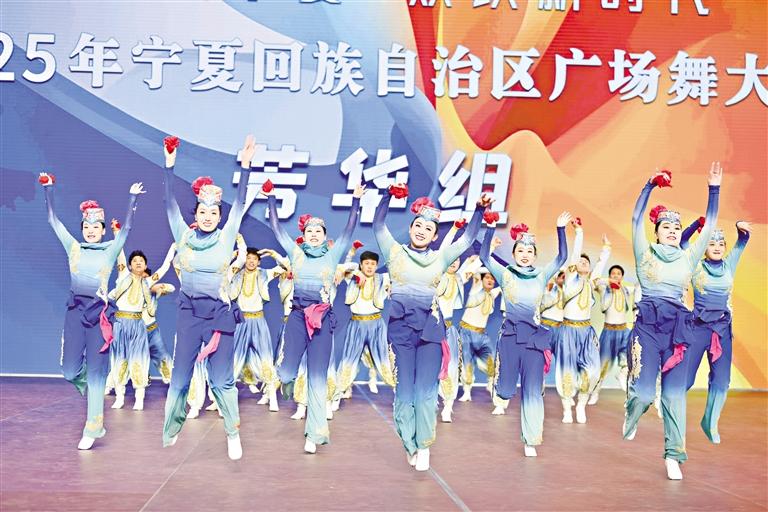 4月28日,“舞动新宁夏 欢跃新时代”2025年宁夏广场舞大赛(决赛)在宁夏亲水体育中心举行。历经全区五市初赛、复赛层层选拔,来自晨光组、芳华组、锦绣组的29支优秀队伍共700余名舞者同场竞技,用充满时代气息和地域特色的舞蹈作品,展现塞上儿女对美好生活的向往。 本报记者 王刚 摄