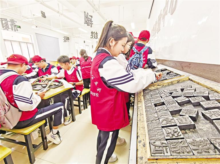 4月27日,学生体验活字印刷。当日,吴忠市滨河中学组织学生到西夏陵国家考古遗址公园开展“行走的思政课”研学活动。