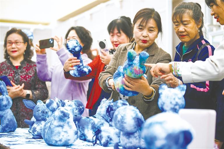 4月29日,银川市文化艺术馆,一件件题材新颖、做工精美的扎染蜡染作品吸引着人们的眼球。当日,由银川市文化艺术馆主办的“匠心染韵 非遗新篇”庆“五一”扎染蜡染艺术展开幕。 本报记者 马楠 王洋 实习生 孙莎莎 摄