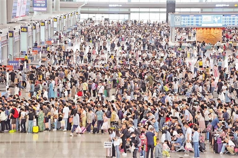 5月4日,旅客在西安北站候车。记者从中国国家铁路集团有限公司获悉,5月4日,全国铁路预计发送旅客2040万人次,计划加开旅客列车1818列,铁路迎来返程客流高峰。 新华社发