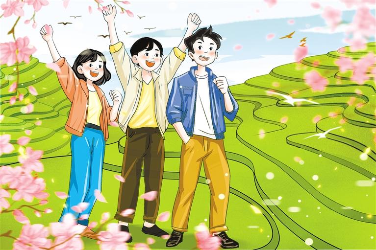 广袤乡土,大有可为,乡村全面振兴呼唤更多“雁归来”。 手绘:李雪