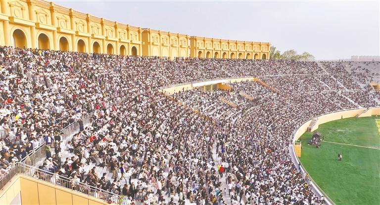 “五一”假期,银川市共接待国内游客298.63万人次,实现旅游总花费13.64亿元。图为假日期间银川览山公园人山人海。 本报记者 张璞 摄