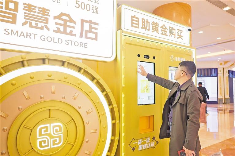 5月5日,在上海市普陀区一家商场内的“智慧金店”,市民了解自助黄金购买设备。 近日,“智慧金店”亮相上海商场。“智慧金店”包含“智能黄金回收”和“自助黄金购买”功能,“智能黄金回收”系统具备自助下单、自动检测、快速回款等功能,系统可自动检测用户放入的黄金重量和纯度,根据实时金价计算回收金额并迅速打款,成为黄金回收领域的一项新探索。 新华社发