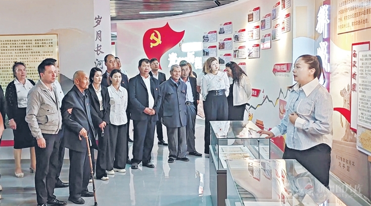 6月28日,拜城县布隆乡托万克布隆村驻村工作队联合村党支部组织党员参观该县社会主义学院铸牢中华民族共同体意识教育基地,回顾党的奋斗历程。□阿卜杜艾则孜·图尔荪摄