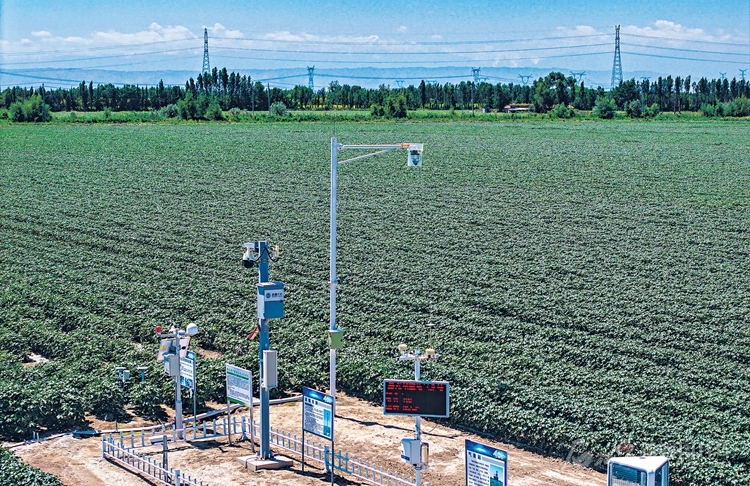 在新疆天业智慧农业科技有限公司的棉田里,智慧农业管理系统在监测棉田数据(6月29日摄)。这套系统可实时监测棉田虫情、地下水、气象等方面数据,形成数字化决策,一部手机就能实现棉田种植管理。□石榴云/新疆日报记者周鹏摄