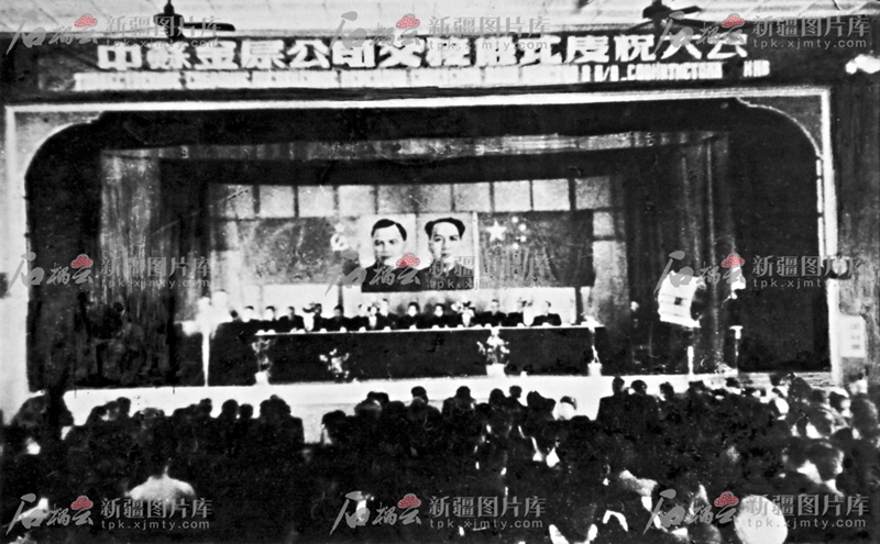 一张泛黄的历史照片,凝固了一段永志不忘的记忆:1954年12月30日,乌鲁木齐,中苏金属公司苏联股份移交仪式庆祝大会会场。
