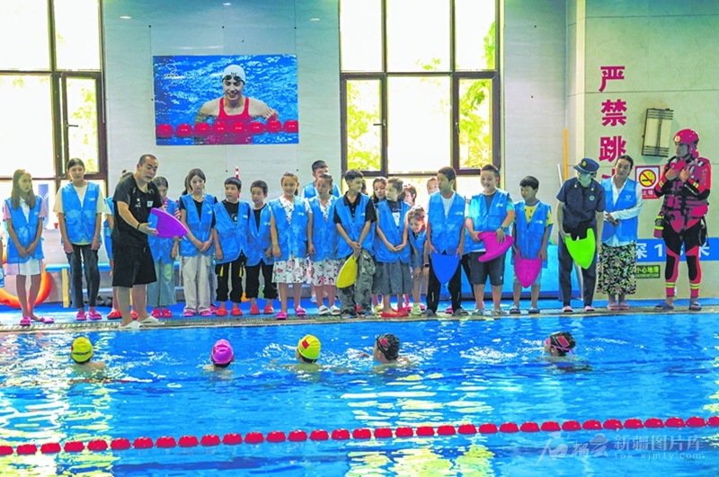 7月6日,阿克苏地区消防救援支队把暑期防溺水教育课堂搬进阿克苏市的一家游泳馆,联合专业教练,为该市各乡镇学校的学生开展安全教育培训。□张勇摄