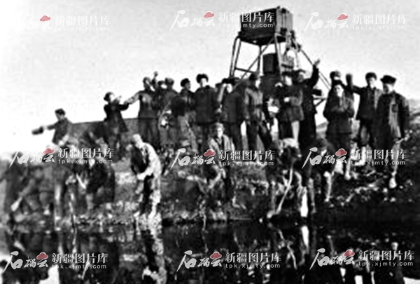 1955年10月29日,克拉玛依一号井喷出工业油流,标志着新中国的第一个大油田诞生。钻探队员们高兴地在喷射出的原油形成的油池边合影。 图片由新疆图片库提供
