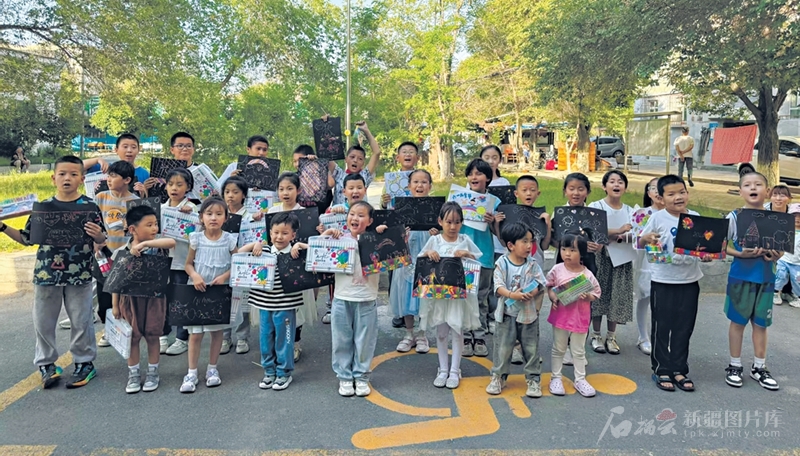 在乌鲁木齐高新技术产业开发区(新市区)喀什东路街道汇园社区,一场别开生面的趣味刮蜡画活动同样吸引了众多孩子参与。孩子们在老师的指导下,用刮笔勾勒出五彩斑斓的图案。