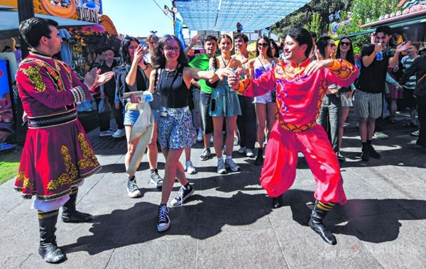 精彩的表演赢得了现场游客的阵阵喝彩。来自广东的游客冯穗欢表示:“表演非常棒,跳得很好。”已在新疆旅居两个月的她,正和朋友学习新疆舞。活动结束后,她立即搜索舞蹈节的购票信息,准备欣赏更多精彩演出。
